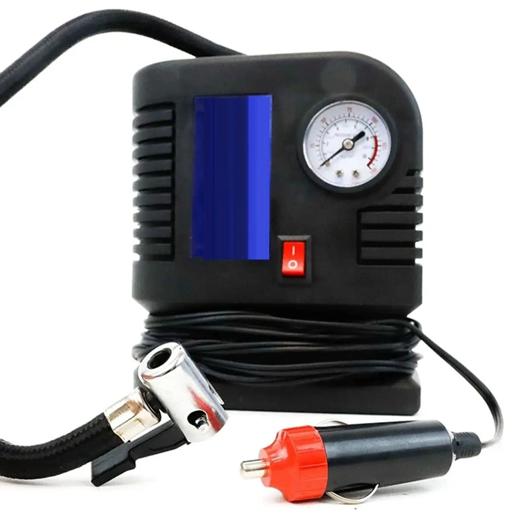3.Kiinnitä kompressori, virta 12 V:n pistorasiasta, täytä suositeltuun paineeseen samalla kun luet metallimittaria.