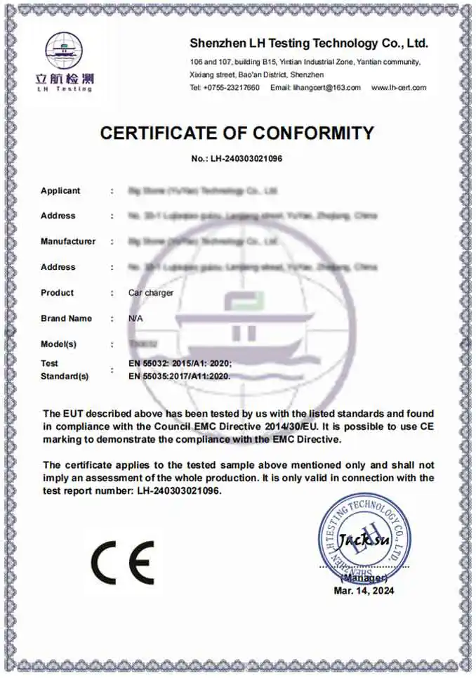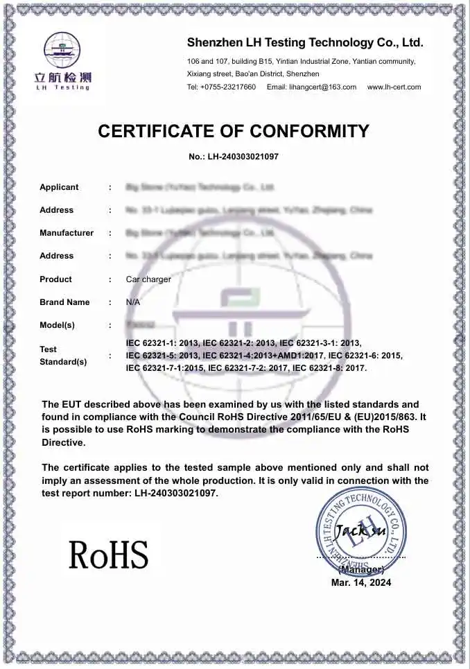 V: Ammattimaisena tehtaana tuotteemme ovat täysin kansainvälisten turvallisuus- ja ympäristöstandardien mukaisia. Tarjoamme CE- ja RoHS-sertifioituja tuotteita. Lisäksi tuotantolaitoksemme on BSCI- ja ISO-sertifioitu, mikä varmistaa, että autolaturisovittimemme täyttävät maailmanlaajuisten huippumerkkien vaatimat tiukat tekniset ja eettiset standardit.