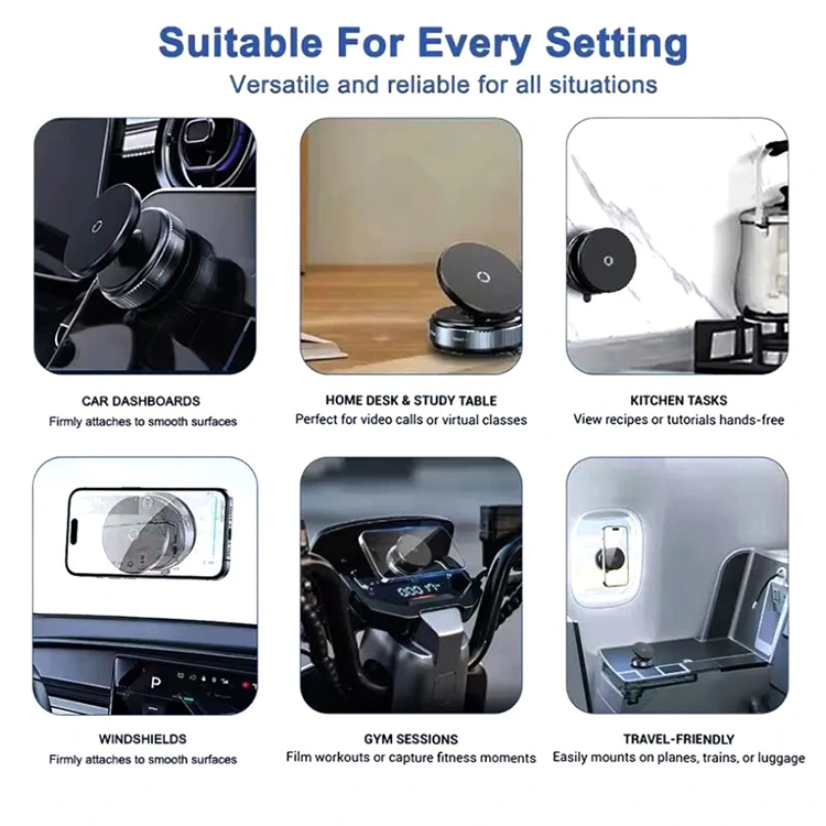 Magneettinen tyhjiö: Autopuhelimen kiinnitys kiinnittyy ajoneuvosi lasiin, kojelautaan tai sileään pintaan nopealla kierteellä saadakseen tukevan otteen – työkaluja ei tarvita. Älä kiinnitä rengasta silikoni-, nahka- tai epätasaisiin puhelinkoteloihin. Aja vaikeilla kaduilla ja jyrkillä käännöksillä huoletta puhelimen ollessa tukevasti kiinnitettynä, jolloin katseesi on vapaa keskittymään vain edessä olevaan tiehen.