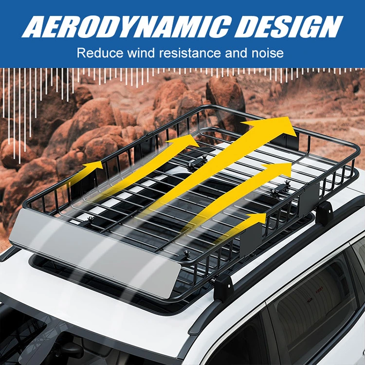 Fancy Roof Rack Carrier Basketin aerodynaaminen muotoilu vähentää tuulen vastusta ja melua ajon aikana. Suunnittelun ansiosta ilma pääsee virtaamaan vapaasti telineen yli, mikä vähentää vastusta ja polttoaineenkulutusta. Se on moottoritie-ystävällinen; se tarjoaa hiljaisemman ja tasaisemman ajon jopa suurilla nopeuksilla.